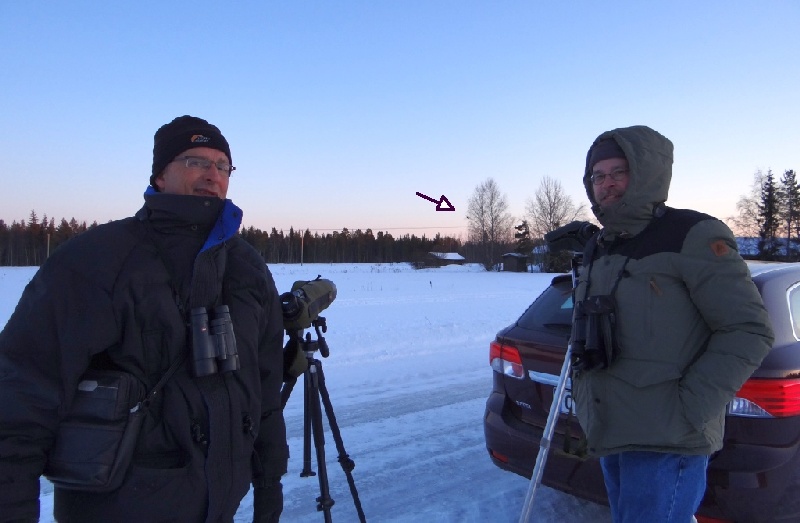 ![]() Grote opluchting: de Laplanduil al aan het begin van de reis gevonden op de stake-out bij Oulu. Rechts André, links ik. http://observado.org/waarneming/view/74285117 |