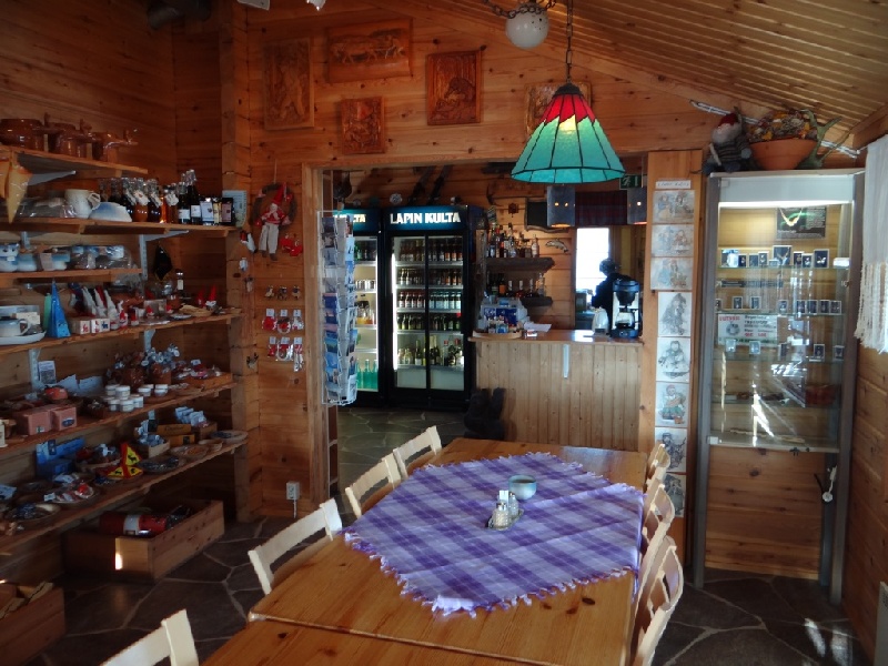 ![]() Een mooi punt voor een stop onderweg naar het hoge noorden is dit café annex winkeltje langs de lange weg vanuit Sodankylä naar het noorden. Het is bij het Lomakylä Holiday Village in Peurasuvanto. De enige koffie en koek over een paar honderd kilometer afstand! |