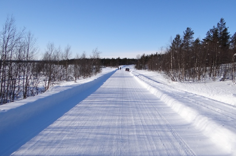![]() Ja en dan was daar nog onze wens om het Noorderlicht te zien. Dit is de lange westelijke zijweg bij Saariselkä, het noordelijkste puntje van onze reis. Langs deze zijweg zaten we zo ver mogelijk van de bewoonde wereld af zodat we geen strooilicht daarvan hadden. Het was die nacht zo koud dat we maar vijf minuten buiten de auto konden staan en dan weer een stukje moesten rijden om op te warmen. En zelden heb ik sneeuw zo hard horen kraken. Maar inderdaad kregen we het Noorderlicht te zien, een gloed aan de hemel die langzaam van vorm veranderde en dan ook wel verticale vormen aannam. Allemaal lang niet zo spectaculair als de foto's en filmpjes op internet willen doen geloven, maar die zijn dan ook lang belicht en/of sterk versneld afgedraaid. Nou ja we hebben het gezien, maar óf het kan veel spectaculairder óf het Noorderlicht is opgeklopt voor toeristische doeleinden. Bedenk ook dat de kans op Noorderlicht per nacht niet zo groot is, je moet er wel wat avonden voor uittrekken. Wij hadden dan ook pas hier wat geluk, op twee eerdere avonden zagen we niets maar dat was dan ook wat zuidelijker. |