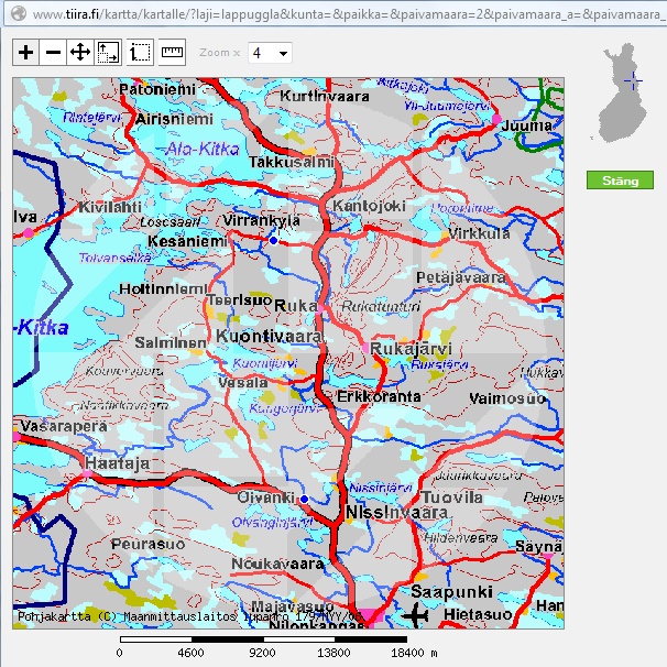 ![]() Haakbek op de begraafplaats in het centrum van Rovaniemi. Hieronder links staat het kaartje dat we vlak voor vertrek uit Tiira.fi haalden voor de Haakbekwaarnemingen van de laatste week voor vertrek (dus 1e week maart). Rechts is de lokatie van de begraafplaats in Rovaniemi aangegeven in een snapshot uit Google Maps, volgens het bovenstaande procédé. http://observado.org/waarneming/view/74285113 |
